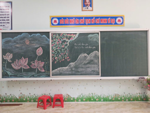 -Mặt bảng: Màu xanh có kẻ ô mờ 5x5cm (THCS) hoặc kẻ oly 2x2cm (Tiểu học), Màu trắng