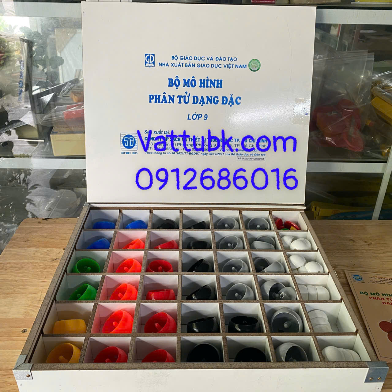 – Hộp đựng bằng gỗ hoặc nhựa có kích thước: (421x368x71)mm, độ dày của vật liệu là 6mm, bên trong được chia thành 42 ô đều nhau có vách ngăn.