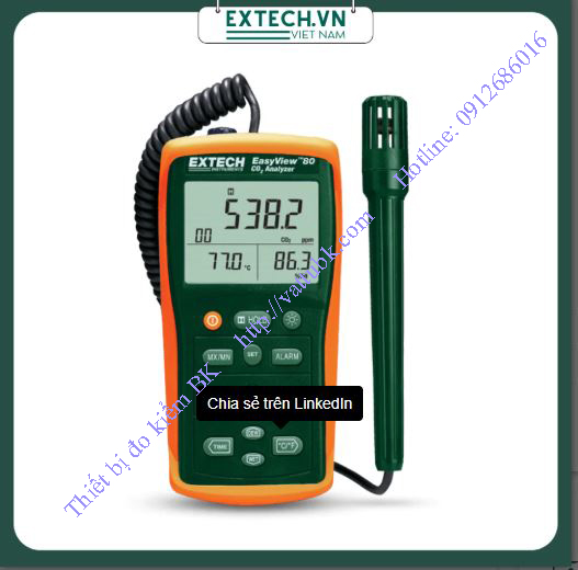 Extech EA80 là dòng máy đo và ghi dữ liệu chất lượng không khí trong nhà cầm tay. Máy có khả năng đo nồng độ CO2, nhiệt độ và độ ẩm. Khả năng ghi dữ liệu lên tới 20000 bộ, cảm biến hồng ngoại không phân tán CO2 không cần bảo dưỡng với bước sóng kép.